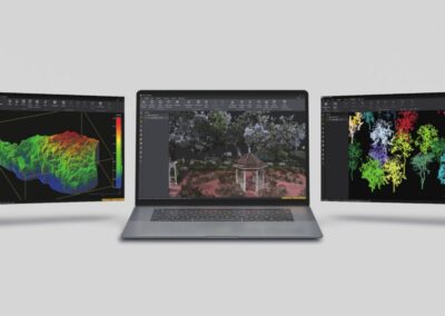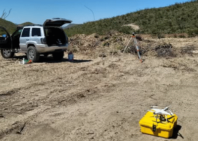 Empleo de drones con cámaras de alta resolución y GPS para generar ortofotos y modelos digitales de terreno.